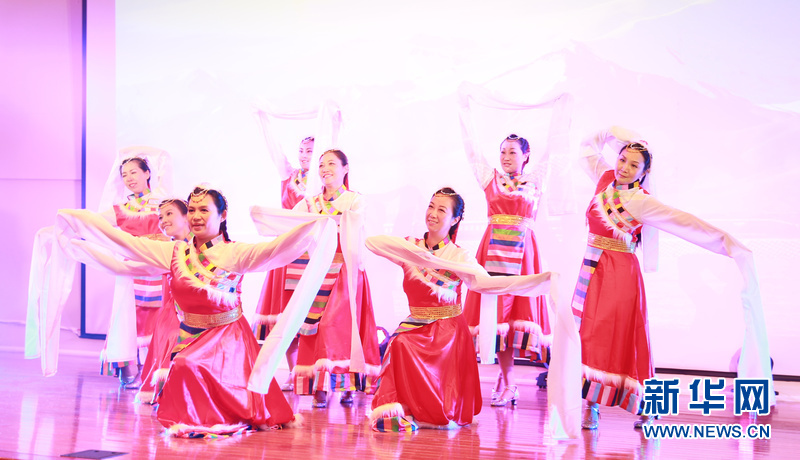 9月25日,中国驻加使馆举行中华人民共和国成立66周年招待会。图为招待会上,中国驻加使馆外交官夫人表演藏族舞蹈。 新华社记者 李保东摄