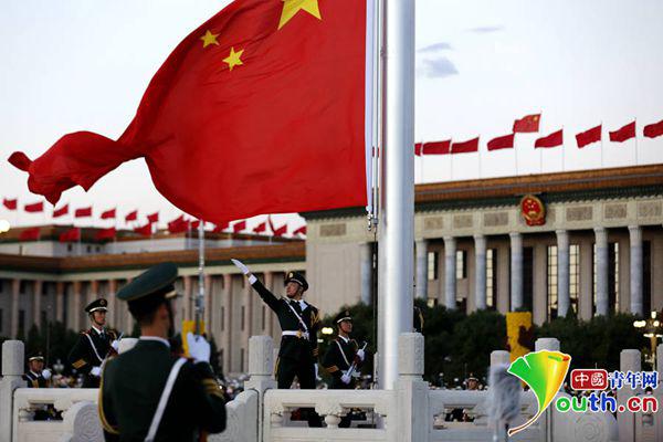 10月1日,天安门广场。当日,来自全国各地的数万名群众聚会北京天安门广场,观看升国旗仪式。中国青年网记者张炎良摄