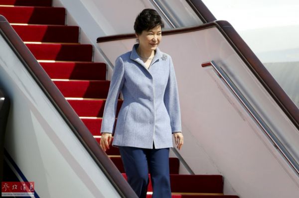 9月2日,北京,韩国总统朴槿惠抵达首都机场,将出席中国“抗日战争暨世界反法西斯战争胜利70周年”纪念活动。(资料图片)