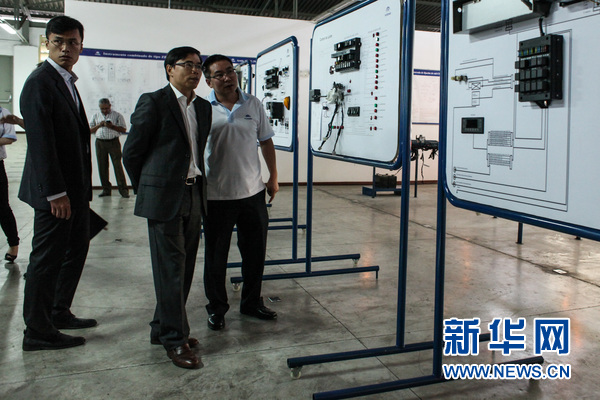 中国驻委内瑞拉经济和商务参赞(中)参观培训中心
