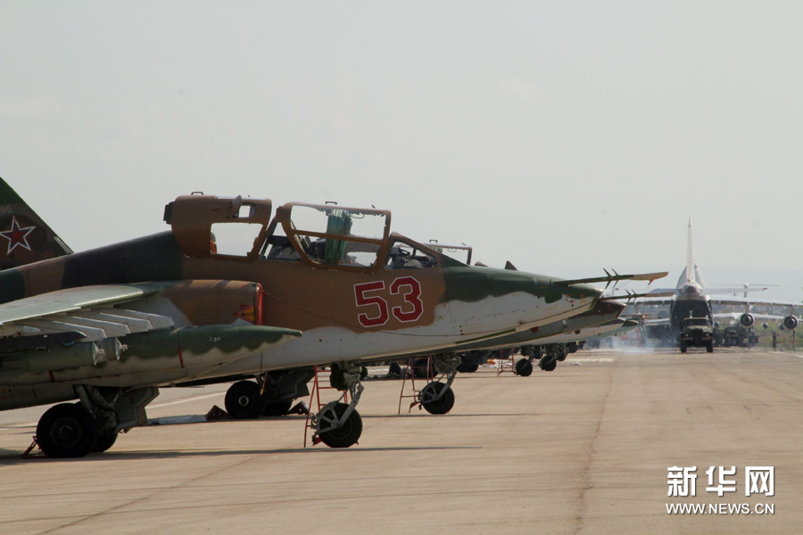 10月3日,俄罗斯战机停放在叙利亚境内的空军基地中。俄罗斯国防部4日称,在过去24小时内,俄空军共对10处叙利亚境内的极端组织“伊斯兰国”目标实施了空袭,摧毁了武器仓库、训练中心等基础设施。新华社/俄新社