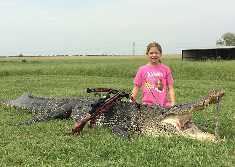 美国10岁女孩用弓弩杀死700斤重大鳄鱼(组图)