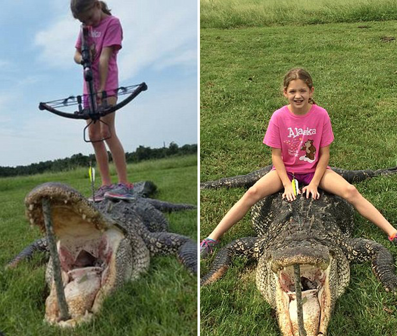 美国10岁女孩用弓弩杀死700斤重大鳄鱼(组图)