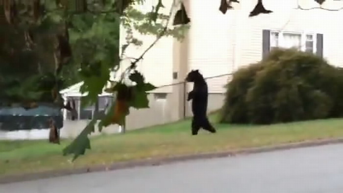 美国新泽西州橡树岭的一只狗熊直立行走(网页截图)