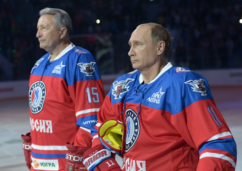 据美联社报道,当地时间2015年10月7日,俄罗斯索契,俄罗斯总统普京在其生日当天将与著名冰球运动员以及夜冰球联盟参与者一起打冰球。10月7日俄罗斯总统普京将迎来63岁生日。普京已经多次参加夜冰球联盟的比赛。最近一次他于5月上场比赛,普京当时打进了8个球,他所在的球队以18比6获胜。(图片来源:美联社)