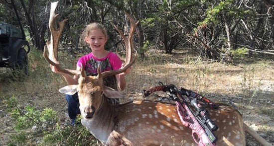 霍克已经有多年的狩猎经验,这是她与死去斑鹿的合影。(网页截图)