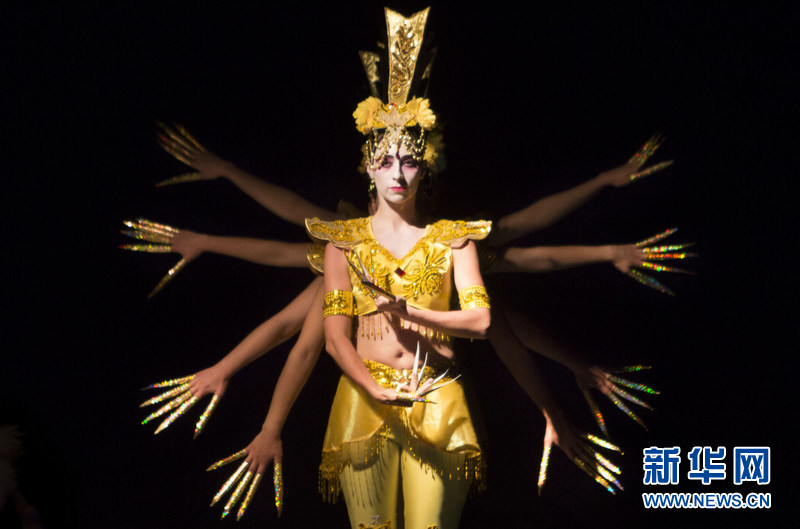 10月6日晚,作为全球“孔子学院日”活动组成部分,阿根廷拉普拉塔国立大学孔子学院组织的中国神话演出在拉普拉塔市剧院隆重登台。这场演出与众不同之处在于,所有演员都是热爱中国文化的智利人。新华社发(马丁·萨巴拉摄)