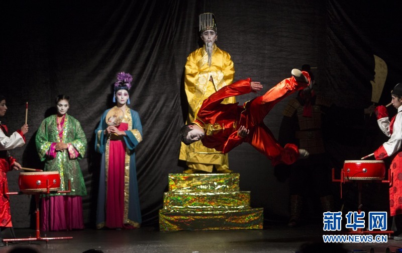 10月6日晚,作为全球“孔子学院日”活动组成部分,阿根廷拉普拉塔国立大学孔子学院组织的中国神话演出在拉普拉塔市剧院隆重登台。这场演出与众不同之处在于,所有演员都是热爱中国文化的智利人。新华社发(马丁·萨巴拉摄)