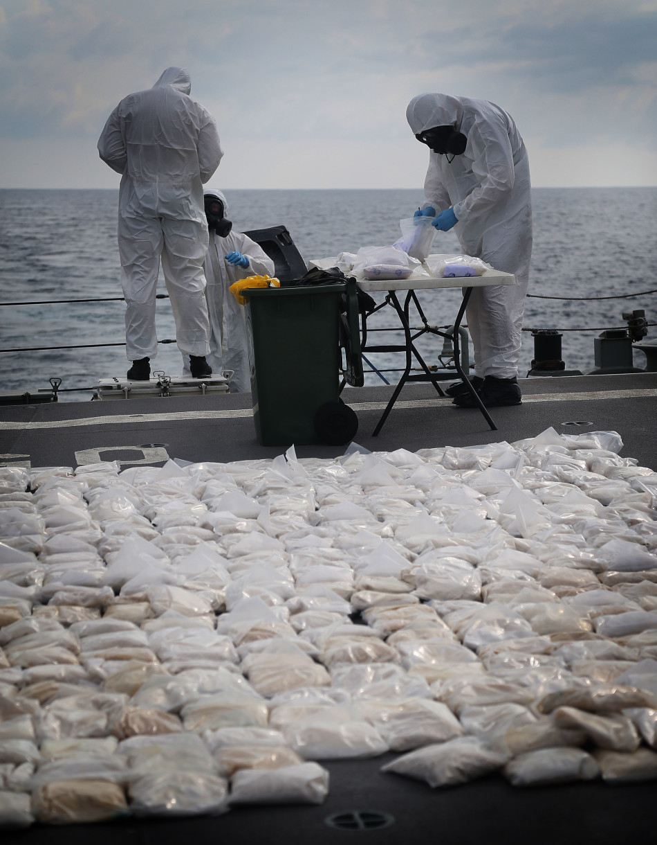 近期,澳大利亚海军墨尔本号护卫舰在印度洋上的缉毒工作获得大进展:在一次任务中缴获了大量毒品。由于远离本土不太可能将毒品运回处理,在将毒品数量核对并展示拍照后,就地液化销毁处理,直接倾倒在大海里!