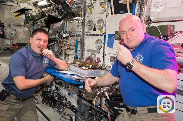 宇航员品尝国际空间站内种植的植物。