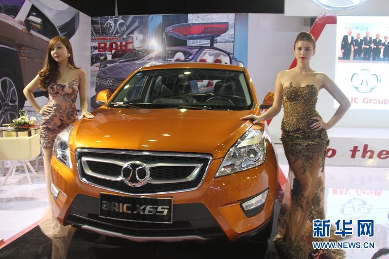 2015年越南国际车展上展示的北汽X65型越野车。10月9日,在越南首都河内,越南2015年国际车展正式开幕。这是越南首次完全由进口汽车厂商参展的国际车展,共有包括中国北汽、捷豹、宝马、保时捷等9家企业参展。展览将持续至13日。新华社记者乐艳娜摄