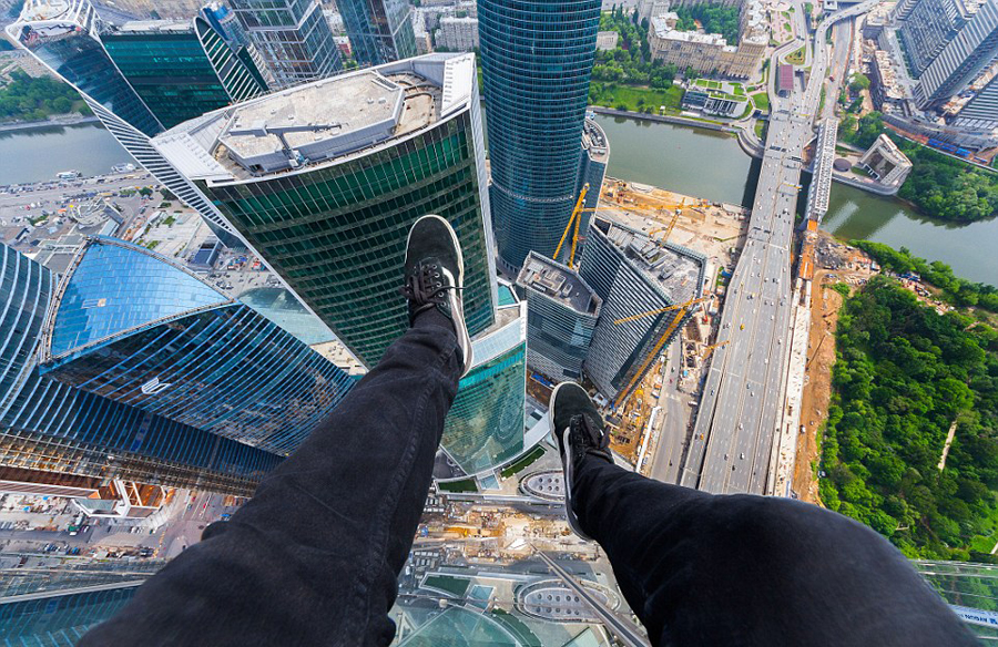 俄罗斯小伙156米高楼边缘惊险拍美景(高清组图)