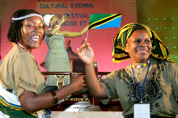 2004年8月24日,在北京参加首届中非青年合作论坛的代表在联欢晚会上即兴表演。当天,中非青年合作论坛在北京举行。(新华社记者陈建力摄)