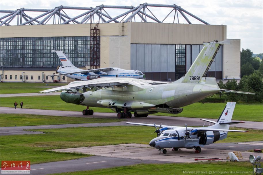 厂房外的一架伊尔-76运输机,发动机被拆的只剩一台,垂尾也不完整。