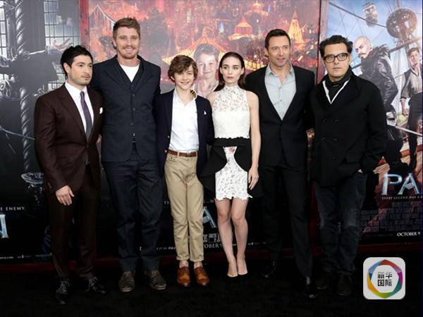 2015年10月4日,休·杰克曼(右二)、乔·赖特(右一)出席在纽约举行的《小飞侠:幻梦启航》首映式。