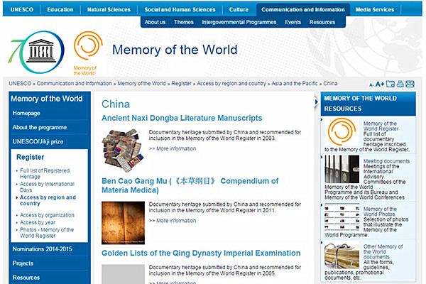 我国也被联合国教科文组织认定为世界上第一个建立世界记忆国家名录的国家。