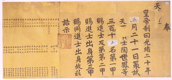 包括清朝康熙至光绪年间的200余幅“清朝金榜”,均为清时通过科举考试殿试的名单,这些金榜大的长约150-220厘米,宽80-90厘米;短小的长约100厘米,宽35厘米。
