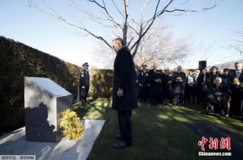 资料图:当地时间2015年7月17日,澳大利亚堪培拉,马航MH17空难一周年之际,国会大厦外举行马航MH17遇难者纪念碑揭幕仪式,澳大利亚总理托尼·阿博特携妻子向纪念碑献花。2014年7月17日,载有298人的马航MH17客机在靠近俄罗斯边界的乌克兰顿涅茨克地区坠毁,机上乘客与机组成员全部遇难。