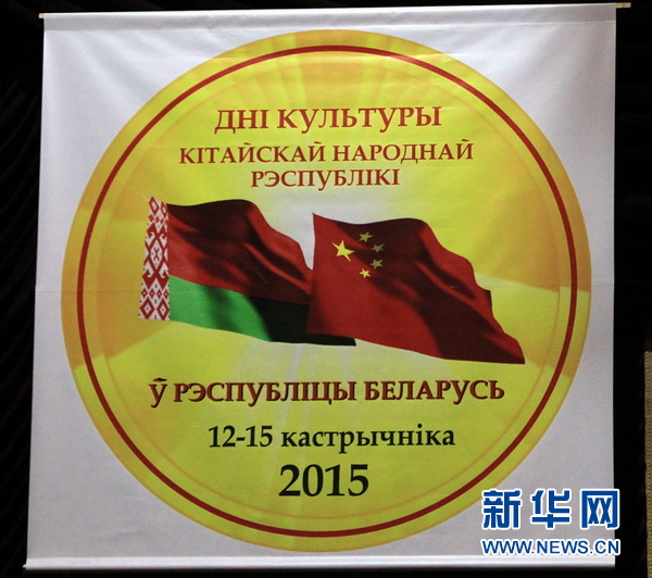 悬挂在明斯克扬基·库帕拉国家模范剧院舞台上方的白俄罗斯“中国文化日”标志。新华社记者陈俊锋摄