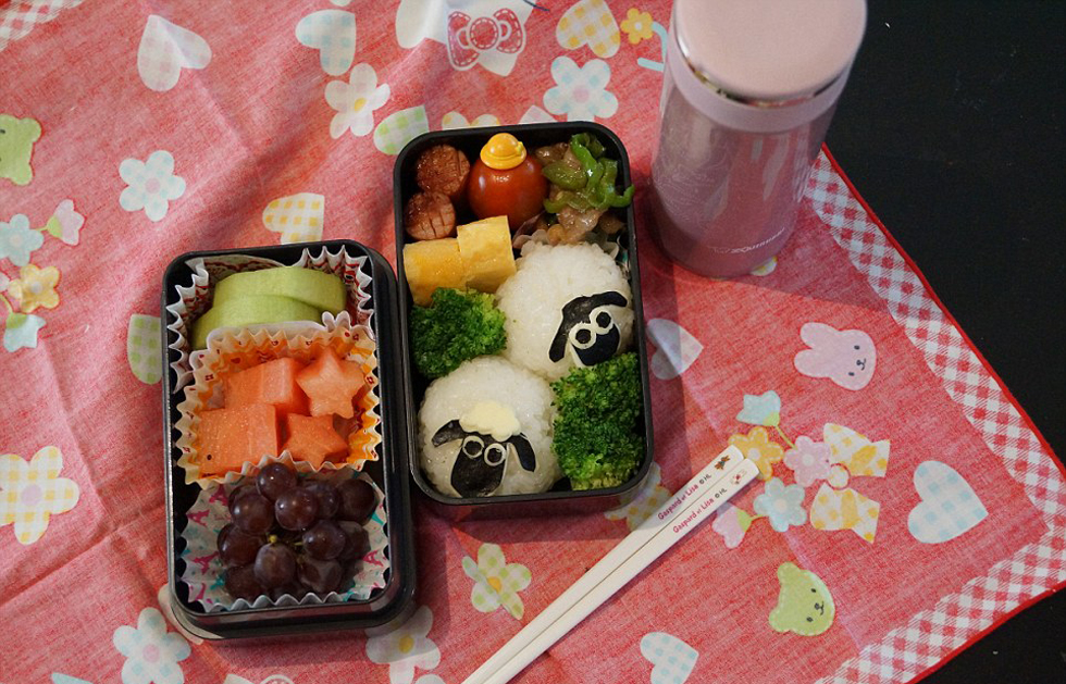 日本11岁的叶香的餐盒非常的具有创意性,里面有一只卡通小羊饭团。(网页截图)