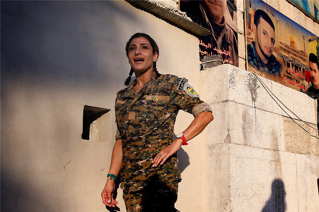 9/17城市街头英姿飒爽的政府军女军人。(网页截图)