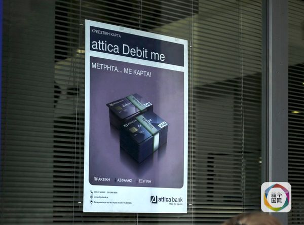 阿提卡银行借记卡宣传广告。(图片来源:新华/路透)