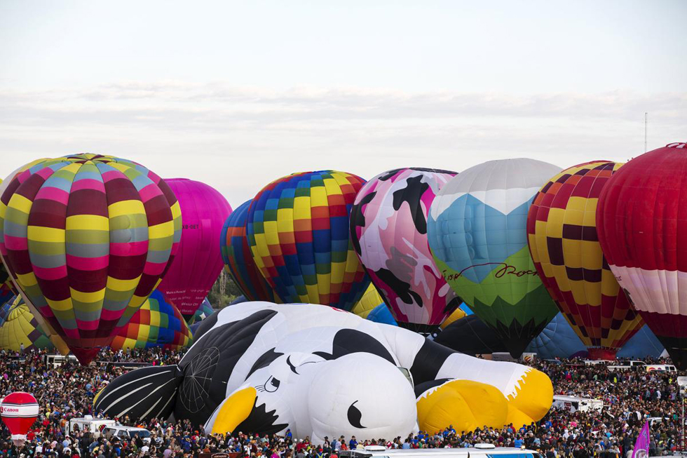 2015年10月3日,阿尔伯克基国际热气球嘉年华首日,热气球升空时刻。(网页截图)
