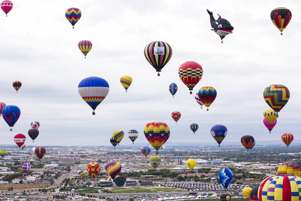 2015年10月4日,阿尔伯克基国际热气球嘉年华上,上百个热气球同时升空。(网页截图)
