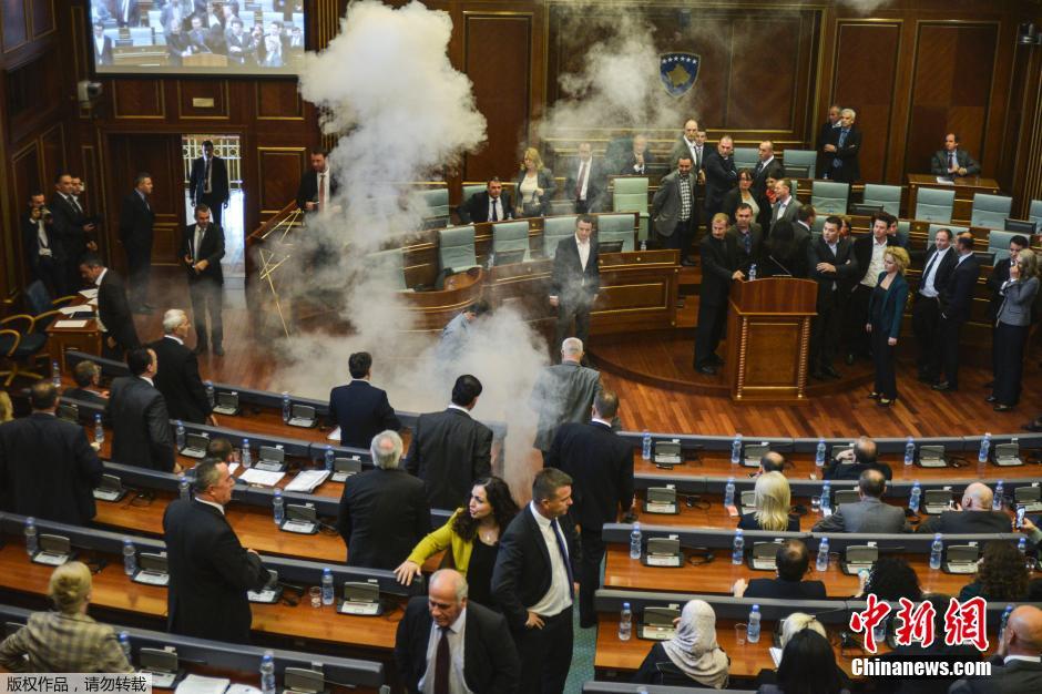 科索沃反对党议员国会内再抛催泪弹 现场浓烟呛人(组图)