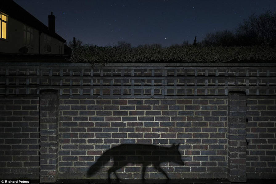 “暗影行者”是英国摄影师Richard Peters的作品,抓拍到了一只狐狸潜入萨里郡一个花园的阴影照片。该作品获动物与城市奖项。