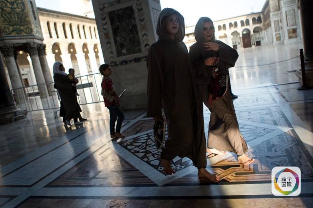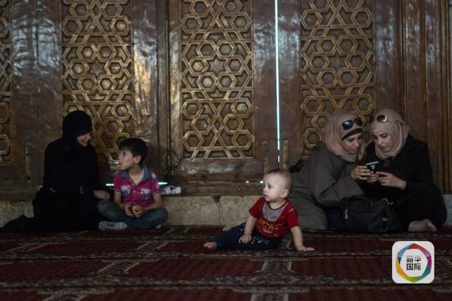 在老城区,一家人在美丽的倭马亚清真寺打发时间。清真寺的中心被认为是宗教宽容的象征。(记者王申,编辑林晶,新华国际客户端报道)