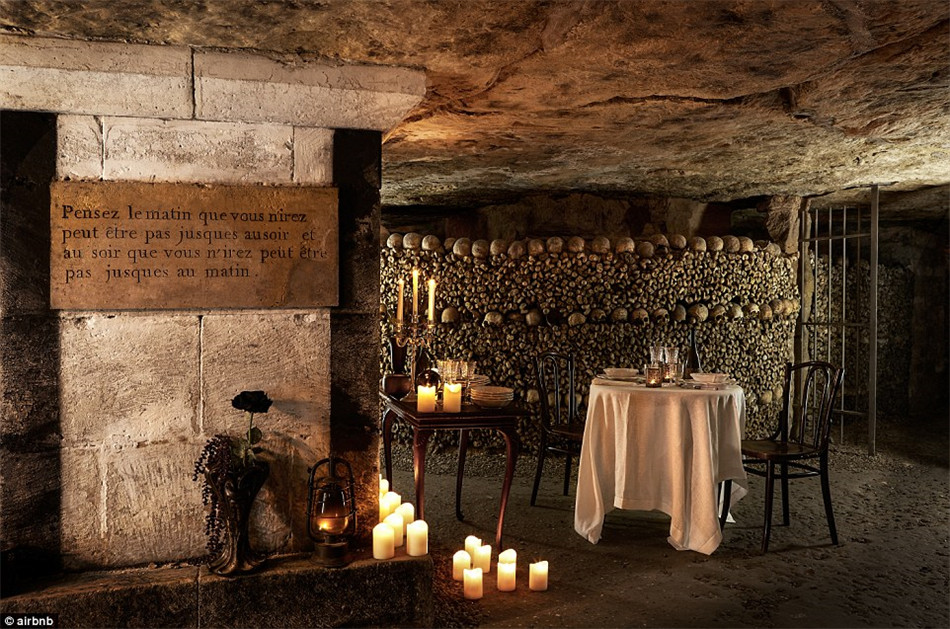 位于巴黎的一处地下墓穴,里面藏有六百万骷髅头,被称为是实际上最恐怖的“卧室”。(网站截图)