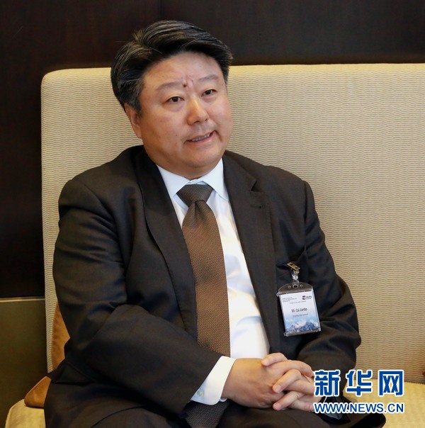 银联国际首席执行官蔡剑波接受媒体采访。新华社记者周良摄