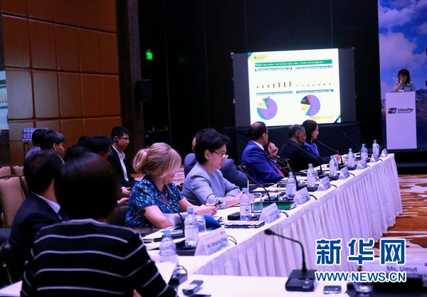银联国际举办远东欧及中亚区域合作会议的现场。新华社记者周良摄
