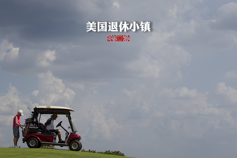 The Villages,又名“退休小镇”,位于美国佛罗里达州。该镇占地面积达34平方英里,并且仍在不断扩大。如今,“退休小镇”比纽约曼哈顿区还要大,并逐渐接近巴黎大小。这里有45个高尔夫球场,600多个球洞,以及一百英里长的小路供人开着高尔夫球车穿行。此外,“退休小镇”的商业区还有类似迪斯尼乐园的主题公园,乡村俱乐部,以及各式各样的社团。这个原先只有800名居民的小村落,在过去25年间迅速发展,如今居民达10万人,他们中的大部分为50、60岁的退休人士。村内1000多家酒吧成为了这些长者的消遣之地。每到傍晚,老人们便到酒吧畅饮和到附近的广场跳舞。图为当地时间2015年6月18日,美国佛罗里达州,“退休小镇”内,居民在打高尔夫。