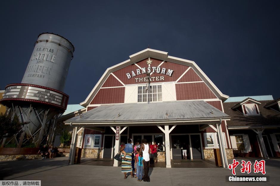 当地时间2015年6月19日,美国佛罗里达州,“退休小镇”的Brownwood村内,人们在电影院前排队。