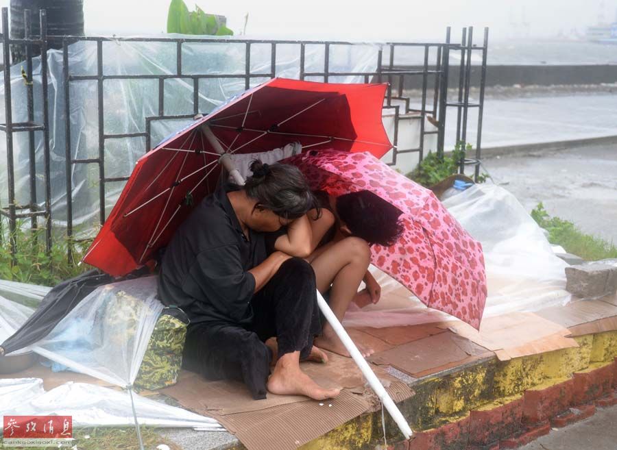 2015年10月18日,菲律宾马尼拉,台风“巨爵”挟带强风登陆马尼拉海岸。