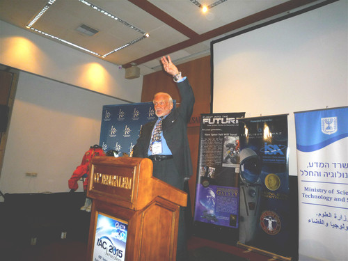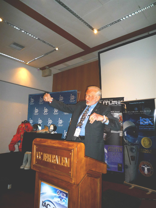 前美国宇航员、登月第二人巴兹·奥尔德林在以色列耶路撒冷举行的2015国际宇航大会期间举行新闻发布会,讲述自己的登月故事。