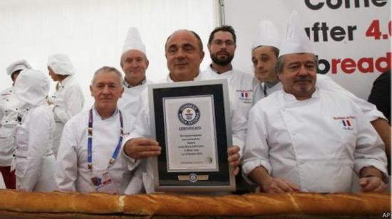 报道称,不过,创世界纪录可不是一件容易的事,60名面包师辛苦工作将近7个小时,他们用一个移动烤箱,顺着准备好的面包棍逐段烘烤,直至完成。