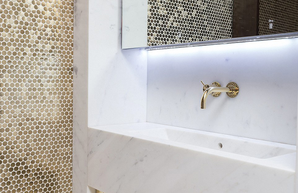 镀金卫生间如阿玛尼酒店一般,还有智能无开关照明设施。(网页截图)