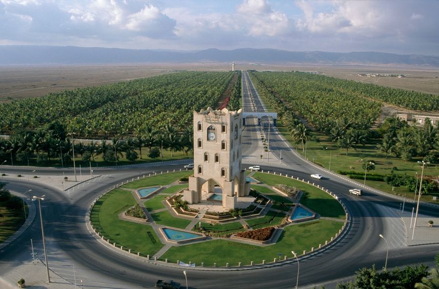 阿曼一处环形交叉路口的中央是钟塔