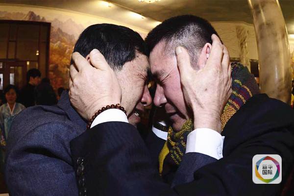 2014年2月20日, 韩国和朝鲜在朝鲜金刚山景区举行为期3天的第19次韩朝离散家属团聚活动。这是双方时隔3年多来首次举行离散家属团聚活动。图为一对兄弟团聚时抱头痛哭。
