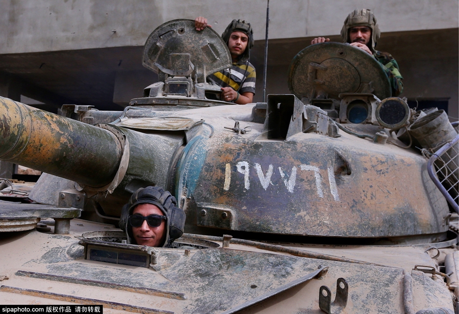 当地时间2015年10月22日,叙利亚大马士革Jobar,叙利亚政府军出动坦克与反政府武装发生激烈冲突。(图片来源:Sipa)