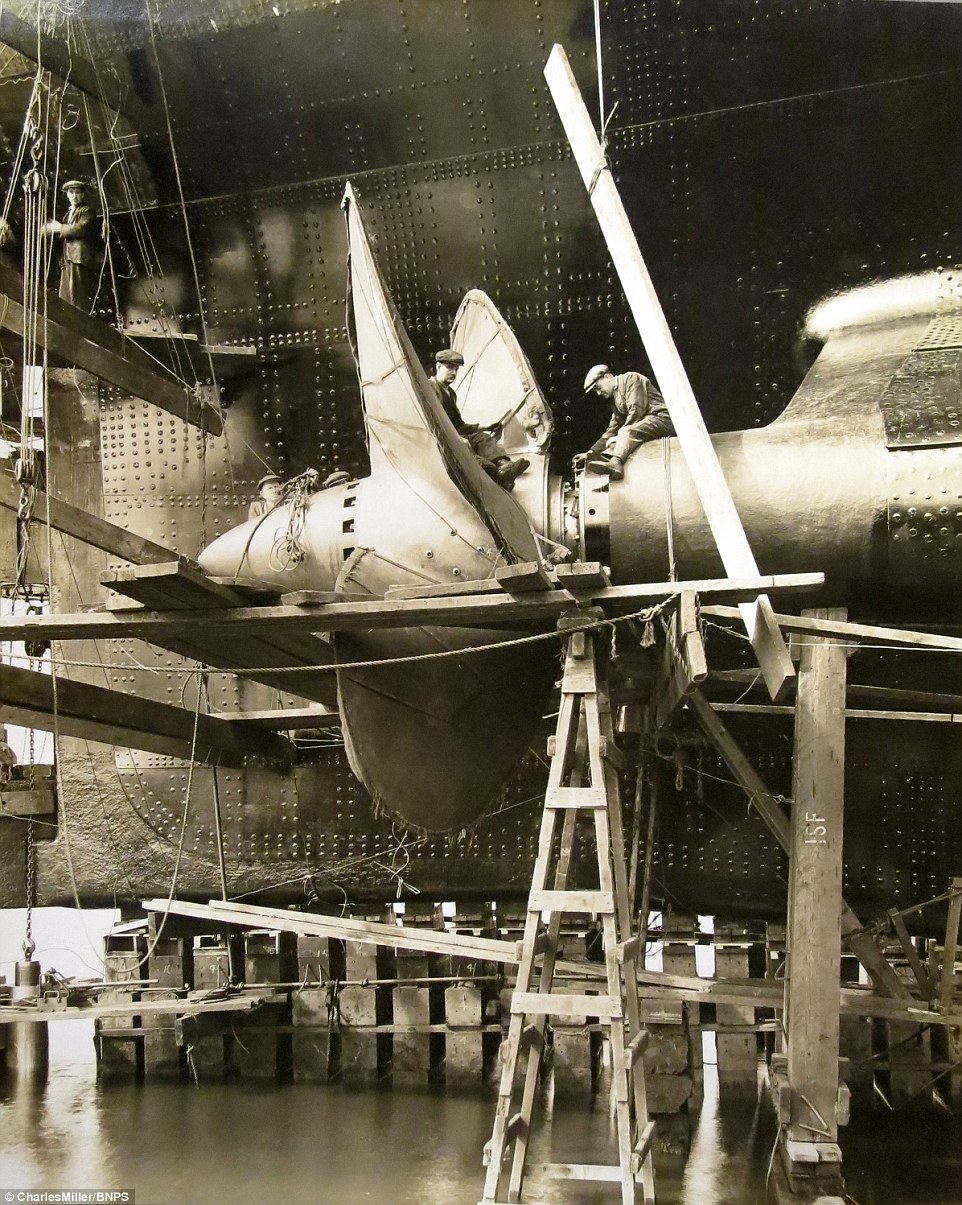 船工正维修“玛丽王后号”的螺旋桨。(网站截图)