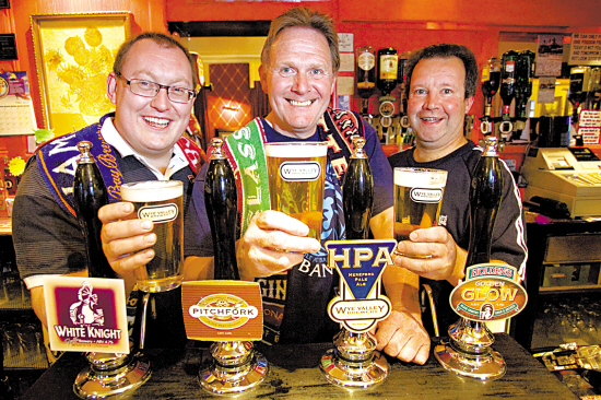 图为2012年5月16日,几名“爬吧”的英国男子。他们从1984年开始,已连续28年每周六去“爬吧”。