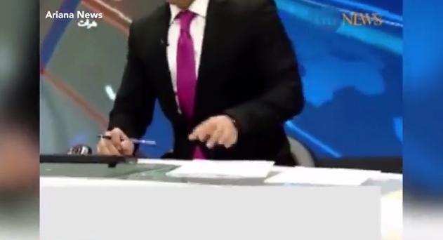 阿富汗喀布尔,新闻主持人正在做直播时地震突然发生,播出的画面显示了这一可怕的时刻,主持人赶紧逃离主播台。