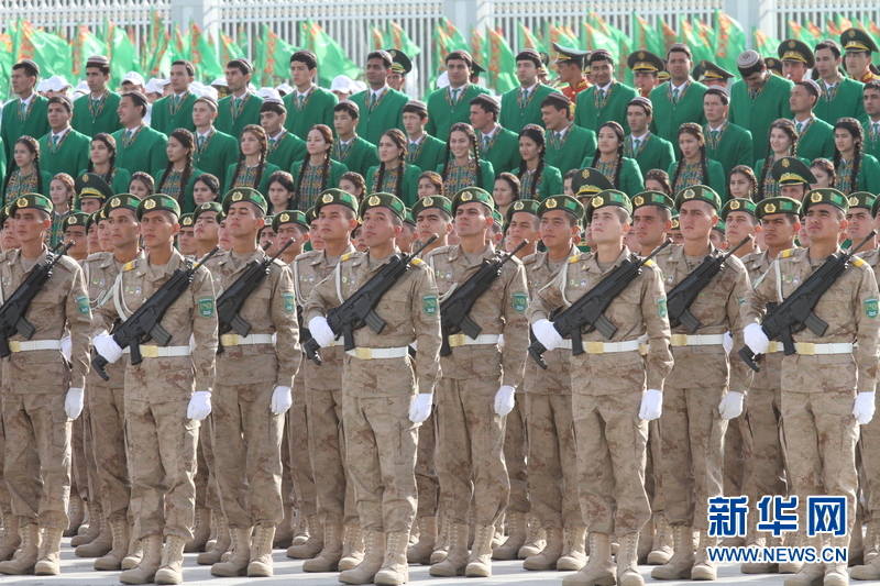 新华网阿什哈巴德10月27日专电(记者卢敬利)土库曼斯坦27日在首都阿什哈巴德中心广场举行阅兵式和群众游行,庆祝国家独立24周年。