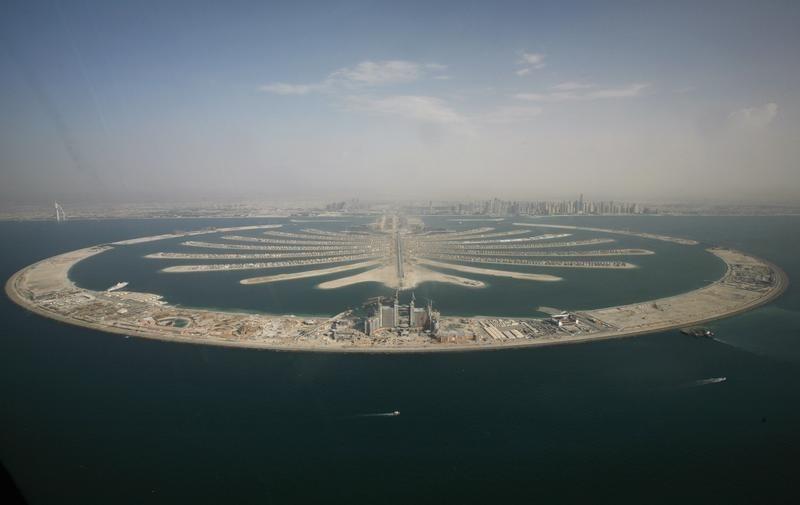 2007年9月7日,沙特迪拜棕榈人工岛俯瞰图。
