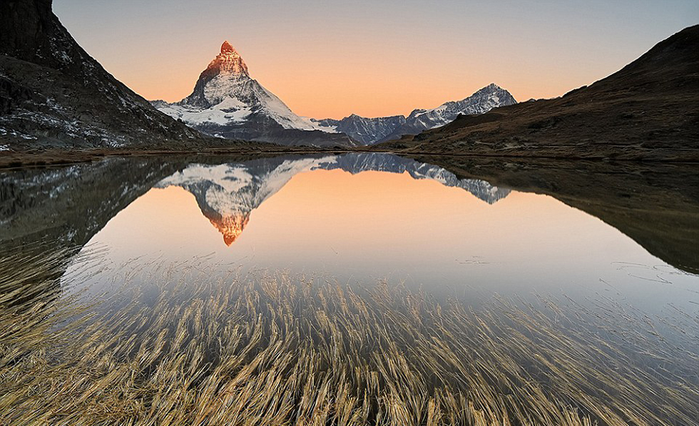 马特洪峰:海拔4478米的马特洪峰是瑞士与阿尔卑斯山最经典的标志,同时也是世界上最受摄影师欢迎的山峰。摄影师阿莱桑德拉·蒙尼康兹(Alessandra Meniconzi)决定在照片中为这座金字塔式样的山峰添加新的元素。他发现,拍摄马特峰的最好时间就是日出时山顶变成红色的时刻。(网页截图)