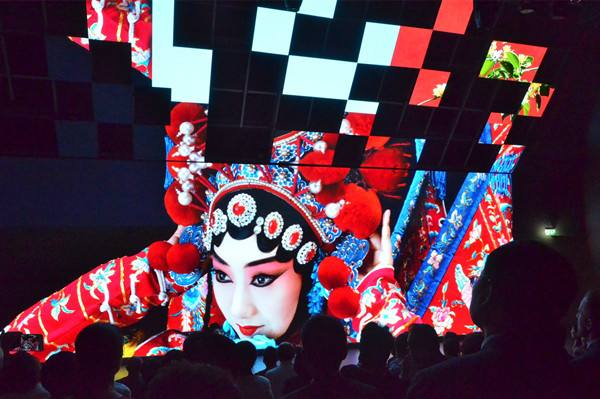 这是5月30日,中国馆播放“北京活动周”宣传片《北京原色》。当日,2015年米兰世博会“北京活动周”正式开幕。(新华社记者宋建摄)
